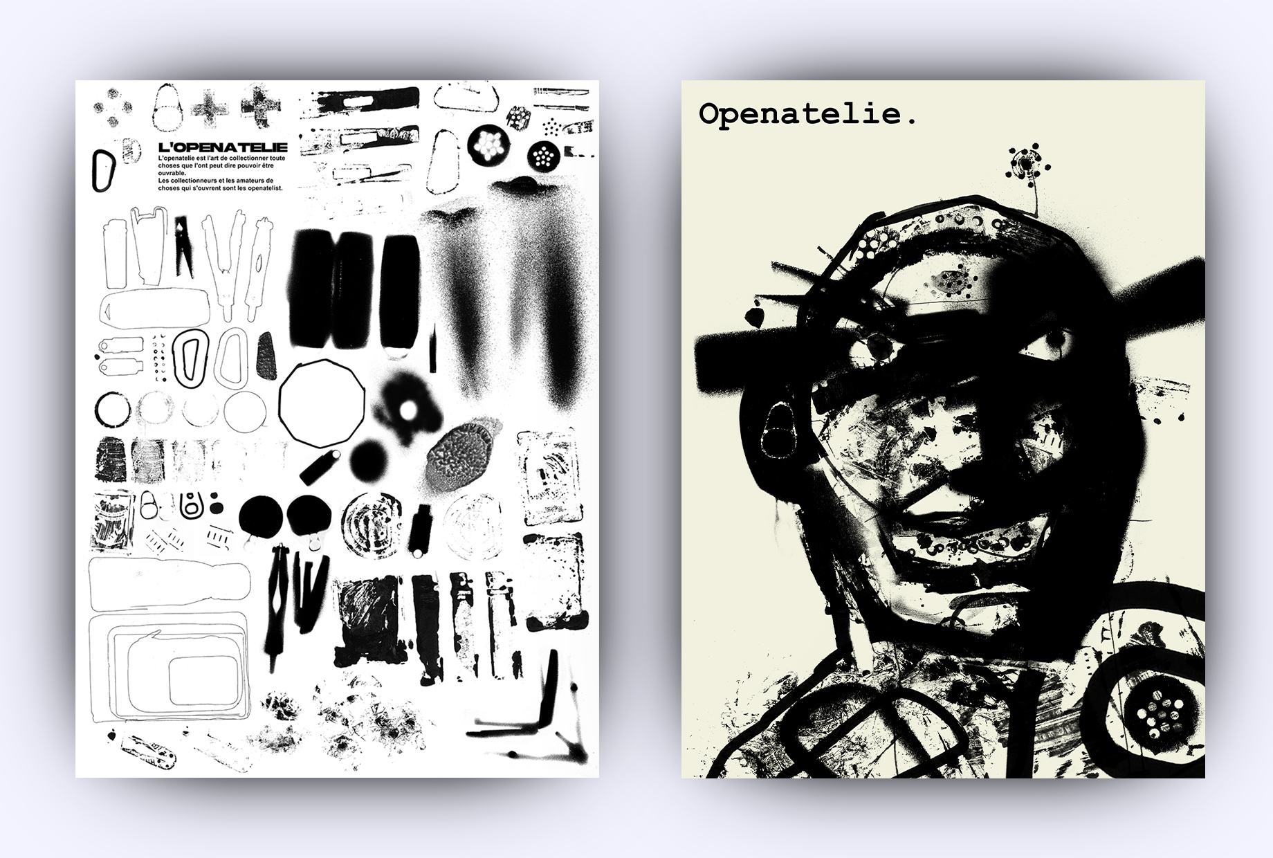 J'ai ensuite utilisé cette collection graphique pour produire deux affiches, un et une édition, qui traversent l'ensemble des expérimentations réalisées. Dans un univers graphique abstrait et énigmatique.